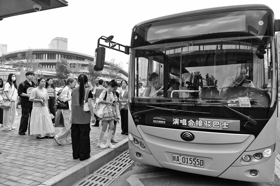 西安世园旅游汽车有限公司公交运营部负责人介绍,为全力保障8月8日至10日汪苏泷演唱会期间歌迷的出行需求,公司精心部署了5条接驳线路,每日调配60辆公交,构建起覆盖地铁3号线双寨站、14号线西安奥体中心站的立体交通网络。