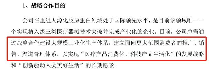 根据锦波生物的公告,目前公司急需通过战略合作建设大规模工业化生产体系,建立面向更大范围消费者的推广、销售、渠道管理体系,以实现“医疗产品消费化、科技产品生活化”的发展战略和“创新驱动人类美好生活”的长期愿景。