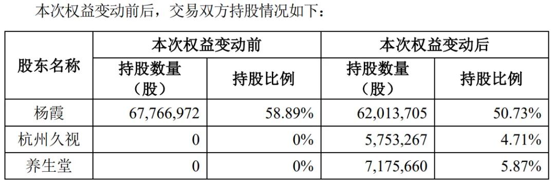 另外,锦波生物的控股股东及实际控制人杨霞与杭州久视签订了《股份转让协议》,将其持有的锦波生物575.33万股,以243.84元/股(含税)的价格转让给杭州久视,转让总价为14.03亿元。